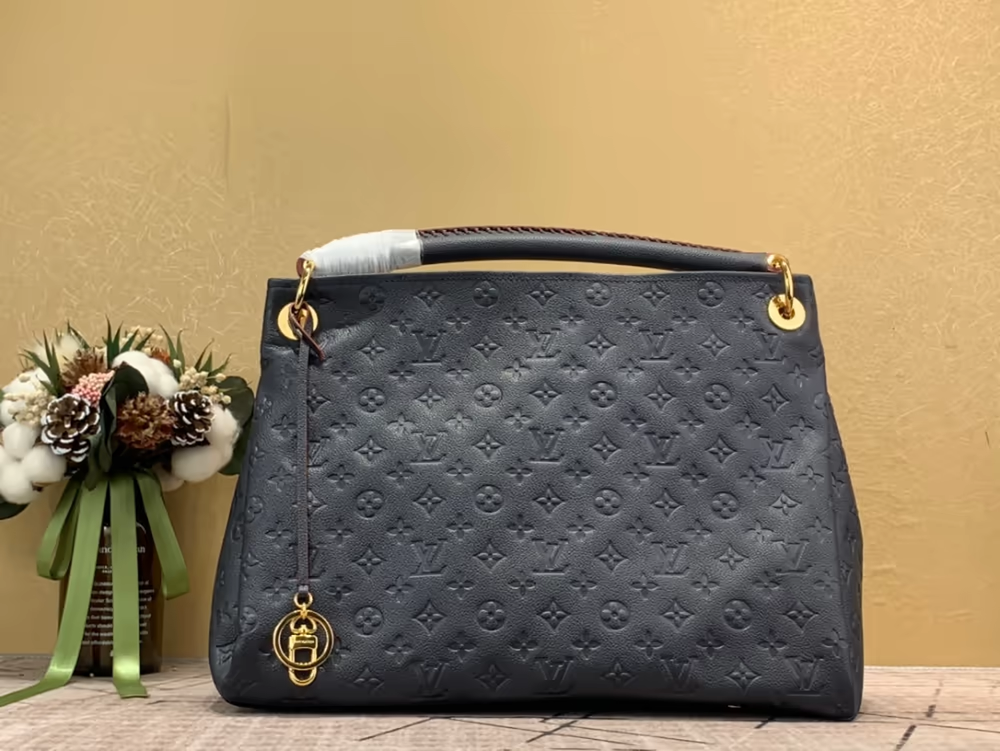 The Artsy MM handbag delights with its refined craftsmanship and functional features. Fashioned from supple Monogram Empreinte embossed leather, this quietly luxurious hobo features a handmade, cross-stitched handle that slips easily over the shoulder. Beautifully detailed with gleaming golden hardware (note the engraved eyelets, D-ring and key holder), it opens to reveal a roomy, well-organized interior.