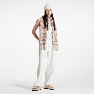 Woven from fine pure wool, the LV Medallion scarf was crafted to deliver warmth in the heart of winter. A bold pattern of giant LV Initials and Monogram Flowers gives it an instantly recognizable signature look, with extra-long fringe for a luxurious finish. An eye-catching accessory, and a coddling companion on cold windy days.