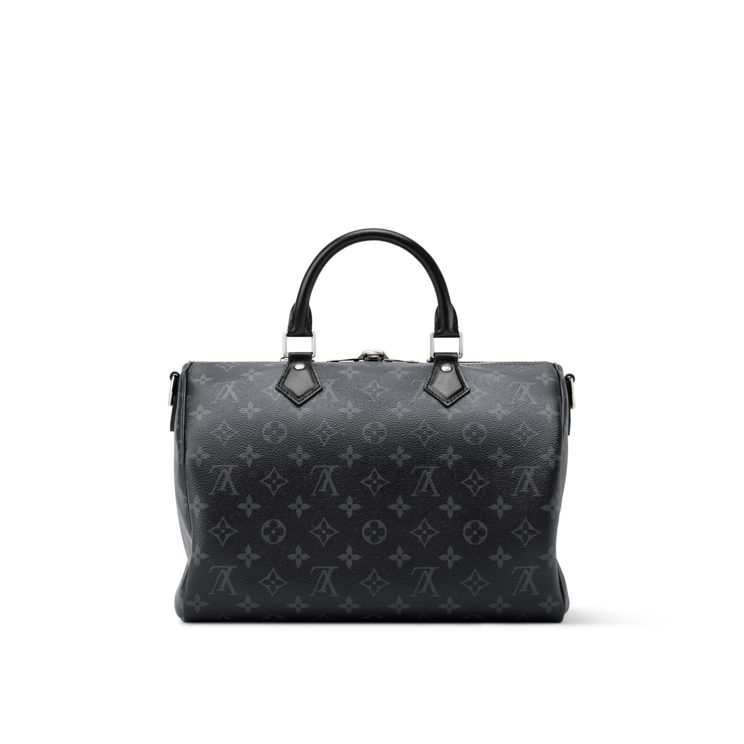 The Speedy Soft 30 is reimagined as part of the LV Ski collection in the House’s signature Monogram Eclipse canvas. The iconic style is adorned with an exclusive double chain and crinkled leather keybell, and also includes a signature padlock. This edition is sized to fit a tablet, as well as other daily essentials.