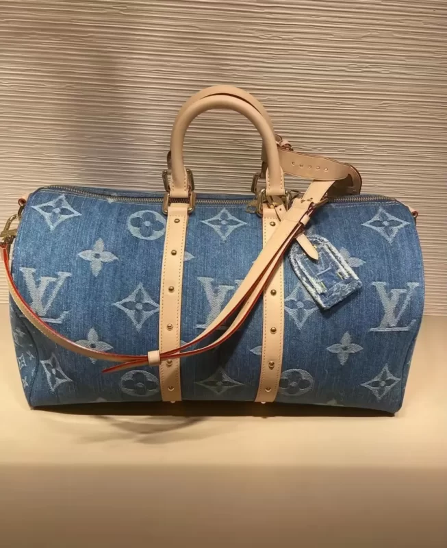 The denim series duffle bag features an enlarged logo, making it even more eye-catching. It would look even better paired with a matching suitcase from the same series.