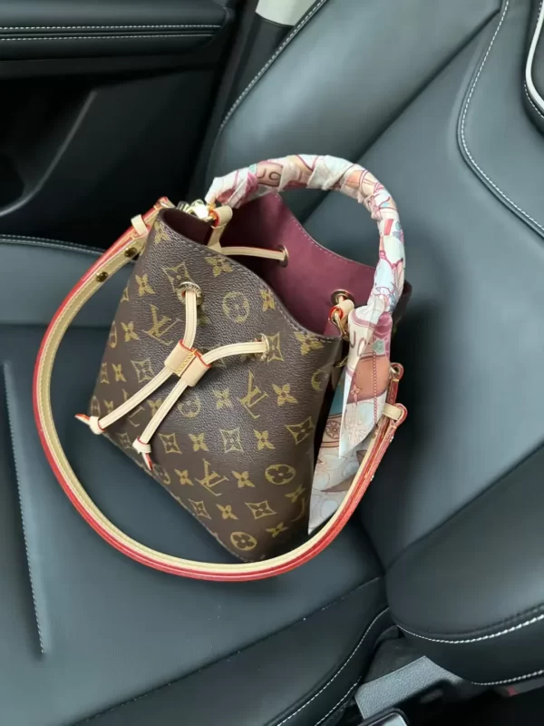 The NéoNoé BB in Monogram canvas with natural leather trim is a smaller interpretation of the House’s iconic NéoNoé bucket bag. Spacious enough to hold essentials such as keys, Airpods, and an iPhone, it features a leather drawstring to close the bag and keep belongings secure. A removable handle and detachable, adjustable strap offer multiple carry options.