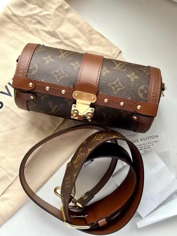 Nicolas Ghesquière introduces a new shape – both feminine and casual – inspired by Louis Vuitton’s archives: the Papillon Trunk handbag. The iconic Papillon duffle bag is transformed into a structured, geometric silhouette that is squarely on-trend. The S-lock, LV-embossed trimmings and studs pay homage to the House’s trunkmaking beginnings.