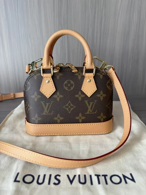 A miniature replica of the iconic Alma bag, the Nano Alma pairs Louis Vuitton’s signature Monogram canvas with natural leather trim. This exquisitely crafted piece combines heritage appeal with modern functionality: the double-zip closure reveals a surprisingly spacious interior, while the two leather handles and adjustable, removable shoulder strap offer multiple carry options.