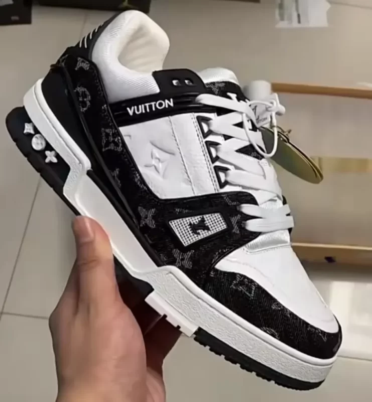 Louis Vuitton Trainer Sneaker Monogram Denim White Black 1A9JGF