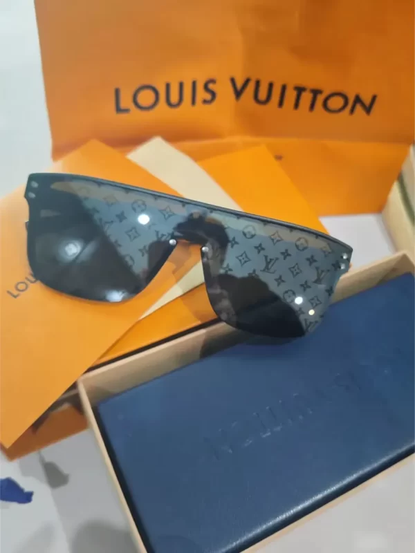 Exuding distinctive House style, the LV Waimea sunglasses have an offbeat aesthetic and polished details. The striking mask-shaped frame is enlivened with Monogram-patterned lenses for a bold twist, while a distinctive keyhole bridge and metallic studs elevate this sophisticated accessory into a standout piece. The Louis Vuitton signature at the temple adds a signature finishing touch.